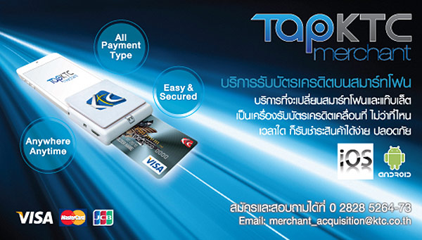 บริการเครื่องรูดบัตรฯ ระบบ mPOS จากบริษัทบัตรกรุงไทย ภายใต้ชื่อ Tap KTC merchant
