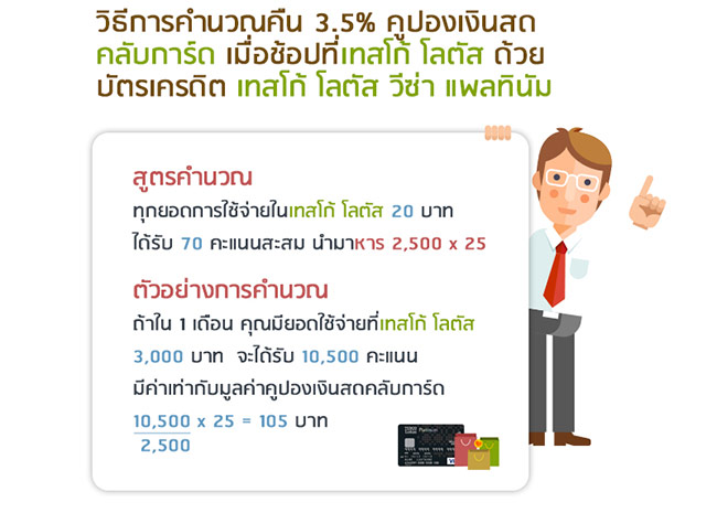 ส่วนวิธีการคำนวณคืน 3.5% คูปองเงินสด คลับการ์ด เมื่อช้อปที่เทสโก้ โลตัส