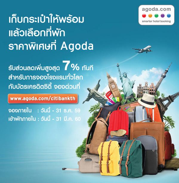 - รับส่วนลดเพิ่มสูงสุด 7% ทันที เมื่อจองโรงแรมทั่วโลก ผ่าน www.agoda.com/citibankth