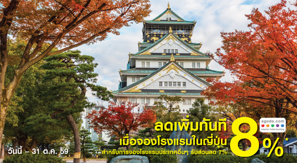 - รับส่วนลดเพิ่ม 8% สำหรับโรงแรมในไต้หวัน (จอง 1 - 31 ต.ค. 59 และเข้าพัก 1 ต.ค. 59 - 31 ม.ค. 60)
