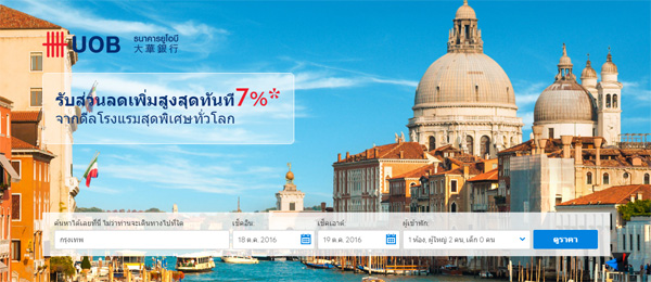 - รับส่วนลดเพิ่มทันที 7% เมื่อจองโรงแรมในประเทศทั่วโลก ผ่าน www.agoda.com/uobth