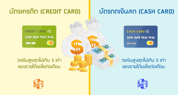ธนาคารแห่งประเทศไทยกำหนดให้สถาบันการเงินสามารถอนุมัติวงเงินสูงสุดได้ไม่เกิน 5 เท่าของรายได้เฉลี่ยต่อเดือน แต่ใช่ว่าทุกคนจะได้รับวงเงิน 5 เท่าทั้งหมดนะคะ เพราะการอนุมัติวงเงินทั้งบัตรเครดิตและบัตรกดเงินสดนั้น ธนาคารหรือสถาบันการเงินจะพิจารณาจากความสามารถในการชำระหนี้เป็นรายบุคคล ฉะนั้นแม้ว่าเรากับเพื่อนจะสมัครบัตรประเภทเดียวกัน พร้อมกัน เงินเดือนเท่ากัน แต่เรามีภาระหนี้อื่นที่จะต้องชำระอยู่ด้วย ก็อาจทำให้วงเงินที่เราได้รับต่ำกว่าของเพื่อนก็เป็นได้ค่ะ