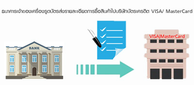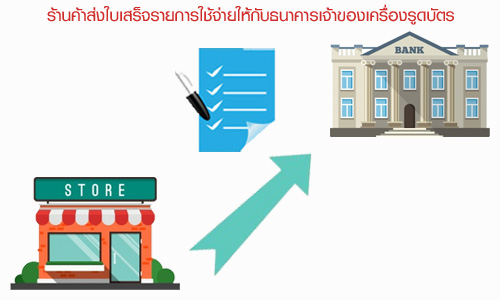 - Step 6 : ทางร้านค้าจะจัดทำใบเสร็จรายการสินค้าและส่งไปยังธนาคารเจ้าของเครื่องรูดบัตรฯ