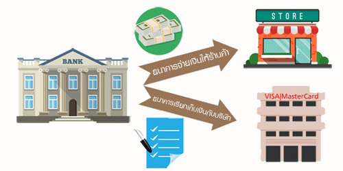 - Step 8 : บริษัทบัตรเครดิต (VISA, MasterCard) จะจ่ายเงินให้กับธนาคารเจ้าของเครื่องรูดบัตรฯ และส่งรายการเรียกเก็บเงินต่อไปยังสถาบันการเงินเจ้าของบัตรเครดิต