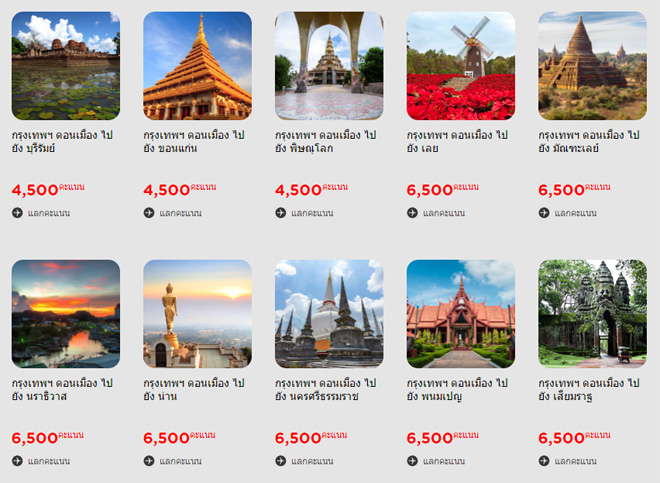 สามารถ CLICK ดูได้ที่นี่ ตัวอย่าง : จำนวนไมล์หรือคะแนนสะสมของสายการบินที่ต้องใช้ในการเดินไปทางประเทศต่างๆ