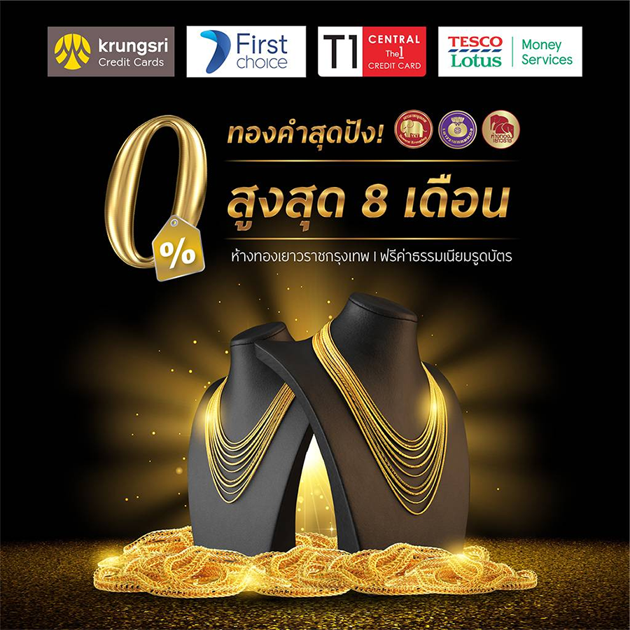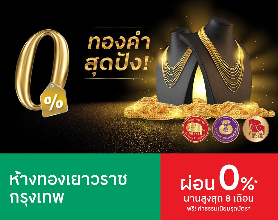 *ขอสงวนสิทธิ์ในการแบ่งจ่าย 0% นานสูงสุด 8 เดือน เฉพาะทองคำรูปพรรณเท่านั้น
