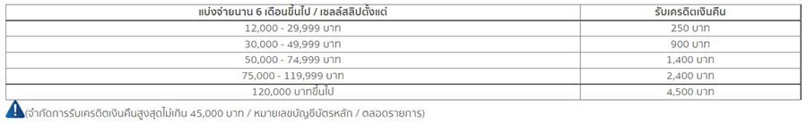 - รับเครดิตเงินคืน 4,800 บาท เมื่อมียอดผ่อนชำระ 120,000 บาทขึ้นไป / เซลส์สลิป