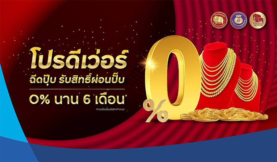 - ผ่อนทองรูปพรรณสุดคุ้ม 0% นาน 6 เดือน*