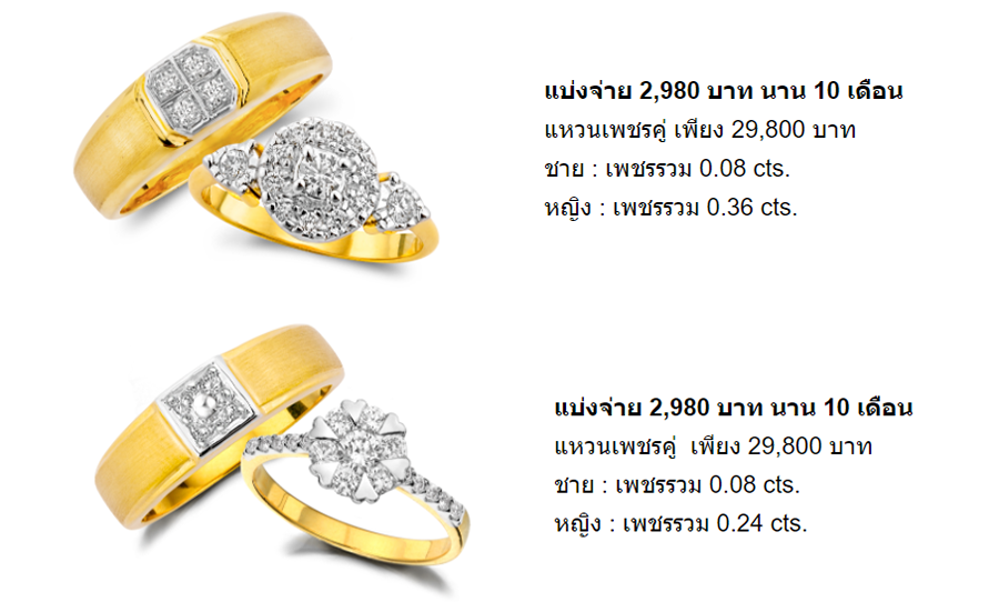 - ผ่อนเครื่องประดับเพชรสุดคุ้ม 0% สูงสุด 20 เดือน*