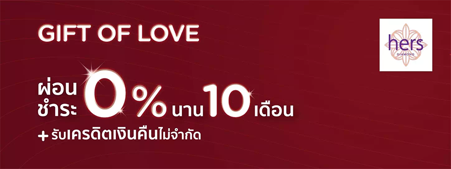 รายละเอียดโปรโมชั่น :Gift of Love ช้อปเครื่องประดับ ที่ HERS DIAMOND กับบัตรเครดิต KTC ผ่อนชำระ 0% นาน 10 เดือน พร้อมรับเครดิตเงินคืนไม่จำกัด