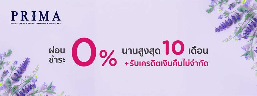 รายละเอียดโปรโมชั่น : สิทธิประโยชน์สำหรับสมาชิกบัตรเครดิต KTC ช้อปเครื่องประดับ กับบัตรเครดิต KTC ที่ Prima Thailand ผ่อนชำระ 0% นาน 6 ถึง 10 เดือน + รับเครดิตเงินคืนไม่จำกัดยอดสูงสุดตลอดรายการ