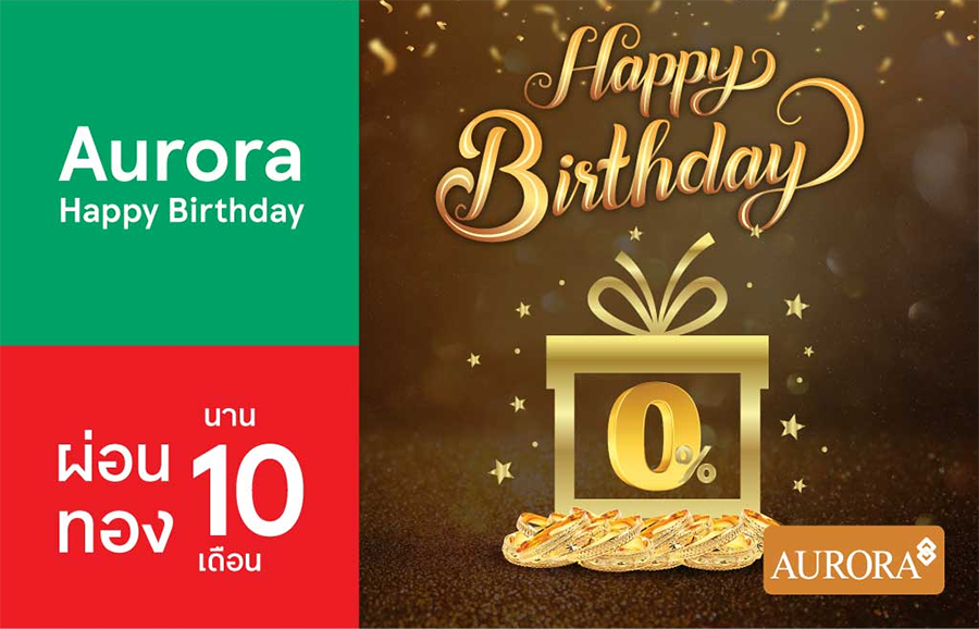 รายละเอียดโปรโมชั่น :Aurora Happy Birthday ผ่อนเครื่องประดับเพชร และทองคำในเดือนเกิด พร้อมรับเครดิตเงินคืน 500 บาท ที่ร้านทองแท้ออโรร่า ทุกสาขาทั่วประเทศ