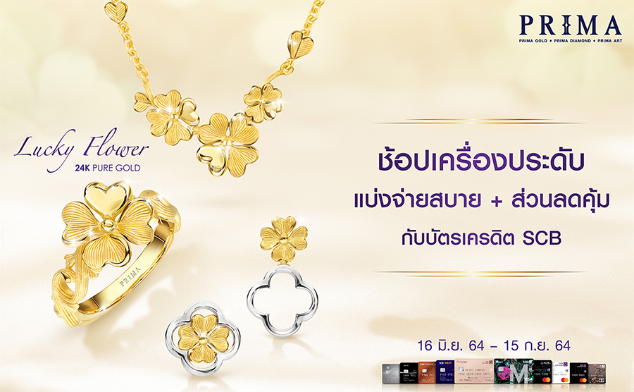 รายละเอียดโปรโมชั่น :บัตรเครดิต SCB ซื้อเครื่องประดับทั้งชำระเต็มจำนวน หรือแบ่งจ่าย 0% + รับส่วนลดคุ้มสูงสุด 5% ที่ร้านพรีม่า ทุกสาขา