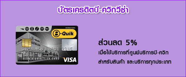 ปิดท้ายกันด้วยบัตรฯ สำหรับคนรักรถยนต์โดยเฉพาะ กับ บัตรเครดิตบี-ควิก วีซ่า ที่จะให้เพื่อนๆ ได้รับส่วนลดถึง 5% เมื่อไปใช้บริการที่ศูนย์บริการบี-ควิก สำหรับสินค้า และบริการทุกประเภท
