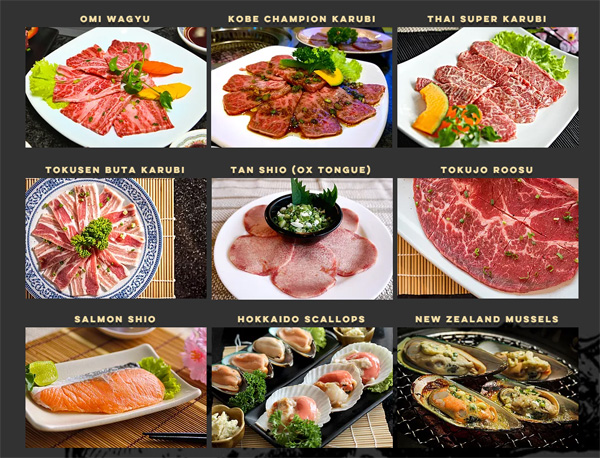 มาเริ่มกันที่ร้านแรก เอาใจเพื่อนๆ ที่ชื่นชอบอาหารญี่ปุ่น (รวมถึงตัวผู้เขียนด้วย) นั่นก็คือร้าน Iroha Yakiniku เป็นร้านอาหารญี่ปุ่นที่เปิดในไทยมานานกว่า 20 ปีแล้วค่ะ มีอาหารให้เลือกรับประทานมากมาย หลากหลายเมนู โดยเลือกใช้วัตถุดิบนำเข้าที่คัดสรรมาเป็นอย่างดี เช่น Kobe Karuibi, Omi Wagyu, Norwegian Salmon, Hokkaido Scallops, New Zealand Mussels สำหรับเพื่อนๆ คนไหนที่ไม่ทานเนื้อวัว ก็จะมีเนื้อสัตว์อื่นๆ เช่น เนื้อหมู ซีฟู้ดต่างๆ และอาหารมังสวิรัตให้เลือกรับประทาน นอกจากอาหารที่มีความสดใหม่แล้ว ยังมีสิ่งอำนวยความสะดวกอื่นๆ เช่น ไวไฟฟรี, โต๊ะอาหารสำหรับเด็กเล็กอีกด้วย ลองไปดูตัวอย่างเมนูอาหารตามภาพด้านล่างนี้เลยค่ะ
