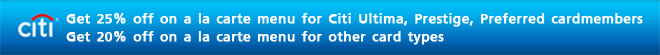 โปรโมชั่นสุดพิเศษจากบัตรเครดิตซิตี้ : รับส่วนลดสูงสุด 25% สำหรับเมนู A La Carte