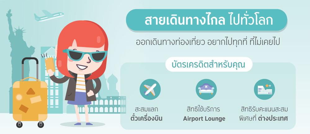 คะแนนสะสมนั้นสามารถนำไปแลกเป็นไมล์ของสายการบินต่อได้ เมื่อมียอดไมล์สะสมถึงเกณฑ์ที่แต่ละสายการบินกำหนด จะใช้แลกตั๋วเครื่องบินฟรี ใช้อัพเกรดตั๋วเครื่องบิน หรือใช้แลกของรางวัลอื่นๆ ก็ได้ นอกจากนี้ บัตรเครดิตบางประเภทยังมีบริการ Airport Lounge ที่สนามบินทั้งในและต่างประเทศให้บริการอย่างครอบคลุม ร้านค้าส่วนใหญ่ในต่างประเทศก็สามารถรับการจ่ายเงินผ่านบัตรเครดิตได้ ดังนั้นคุณจึงสบายใจหายห่วง ไม่ต้องพกเงินติดตัวไปเยอะ ลดความเสี่ยงในการสูญหายของเงินสด แถมยังมีสิทธิ์ได้รับคะแนนสะสมพิเศษเพิ่มอีกด้วย
