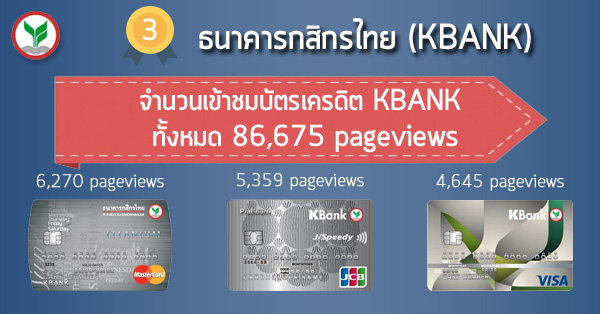บัตรเครดิตกสิกรไทย (KBANK Credit Card) และมีจำนวนคนเข้าดูข้อมูลบัตรเพิ่มขึ้นจากปีที่แล้วเหมือนกันค่ะ ด้วยยอดสูงถึง 86,675 pageviews และ 3 อันดับบัตรเครดิตกสิกรไทย ที่มีคนเข้าดูมากที่สุด ได้แก่