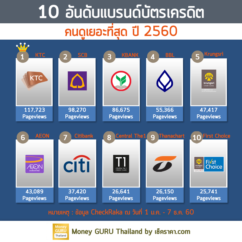 (หมายเหตุ : เป็นการจัดอันดับโดยรวบรวมข้อมูลจาก Google Analytic ณ วันที่ 1 ม.ค. - 7 ธ.ค. 60) อันดับ 1. บัตรกรุงไทย (KTC)