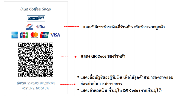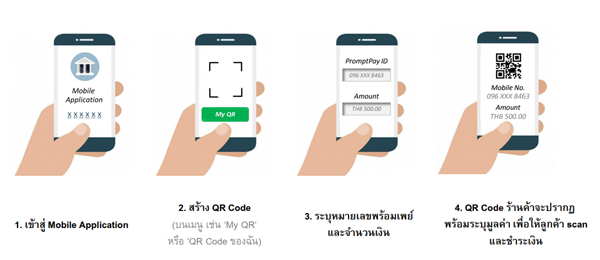 - แบบ Dynamic : QR Code จะเปลี่ยนในทุกรายการ เช่น การระบุราคาสินค้าในแต่ละรายการ โดยเราไม่ต้องใส่จำนวนเงิน กรณีนี้ QR Code จะถูกสร้างขึ้นจาก mobile application ของร้านค้าในแต่ละรายการ