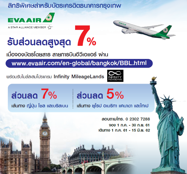 www.evaair.com/en-global/bangkok/BBL.html พร้อมรับไมล์สะสมโปรแกรม Infinite MileageLands