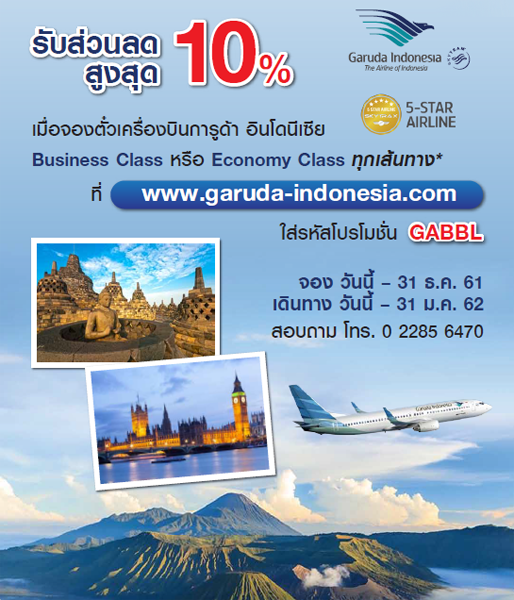 www.garuda-indonesia.com ระบุรหัสส่วนลด : GABBL