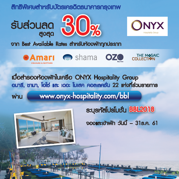 www.onyx-hospitality.com/bbl ระบุรหัสส่วนลด : BBL2018