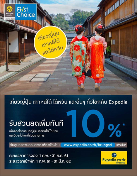 www.expedia.co.th/krungsri ระยะเวลาการจอง : วันนี้ - 31 ธ.ค. 61