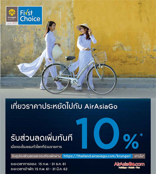 thailand.airasiago.com/krungsri ระยะเวลาการจอง : วันนี้ - 31 ธ.ค. 61