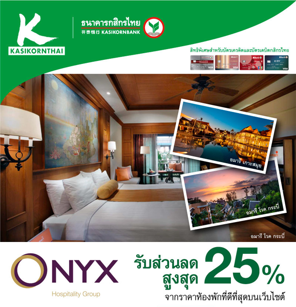 รายละเอียดโปรโมชั่น : รับส่วนลดสูงสุด 25% จากราคาห้องพักที่ดีที่สุดบนเว็บไซต์ ONYX