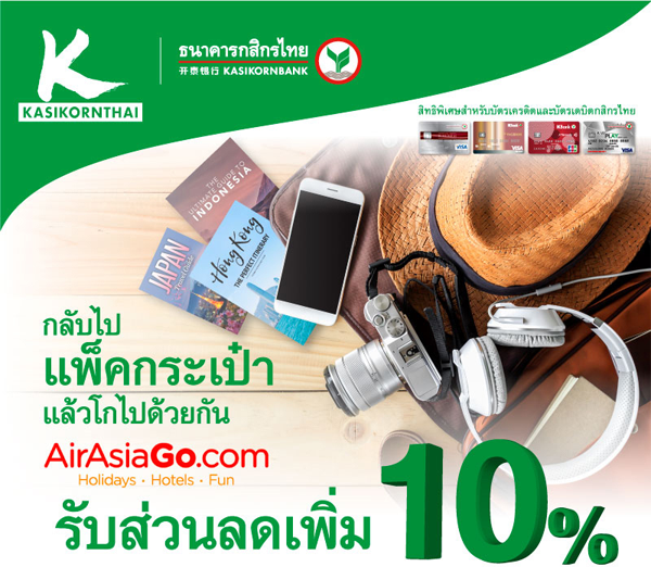 thailand.airasiago.com/kbank ระบุรหัสส่วนลด : AAGKBANK18