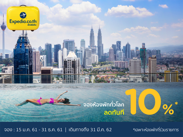 Expedia.co.th จองโรงแรมเลยตอนนี้และประหยัดสูงสุด 60%! ลดเพิ่มอีก 10% สำหรับการจองห้องพักที่ร่วมรายการ