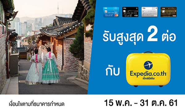 - ต่อที่ 2 รับเงินคืน 500 บาท เมื่อมียอดใช้จ่ายตั้งแต่ 5,000 บาท ขึ้นไป/ครั้ง ผ่าน www.expedia.co.th/TMB