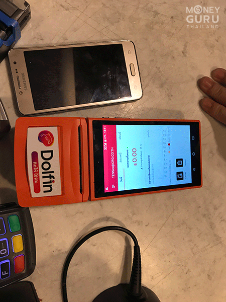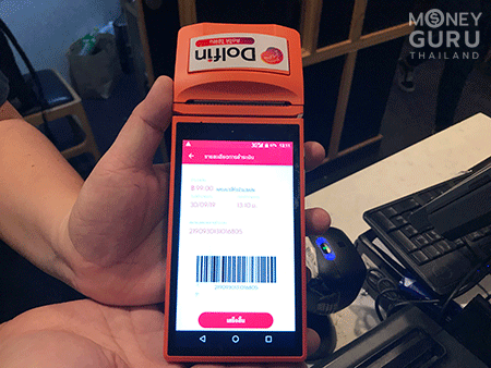 ที่ร้านจะมีเครื่องหน้าตาแบบนี้ แสดงว่ารองรับการชำระเงินผ่าน App Dolfin