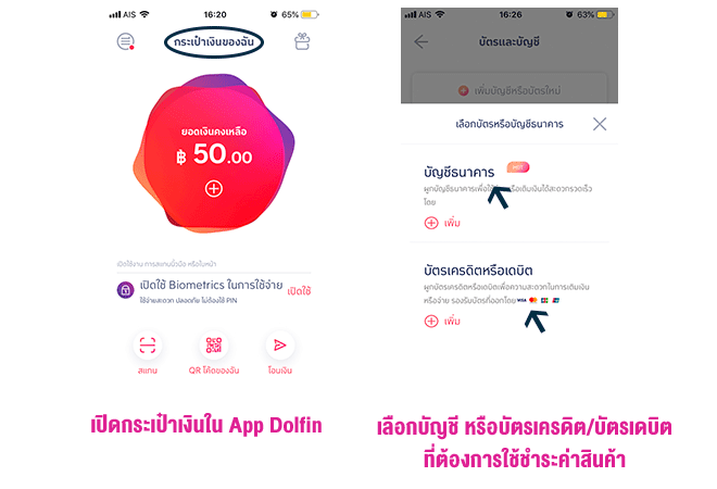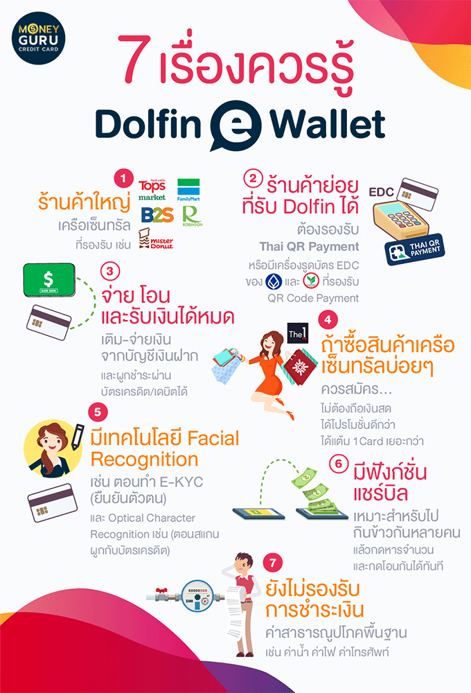 โดยรวมแอปฯ Dolfin ไม่ต้องถือเงินสด ถ้าเราซื้อสินค้า หรือบริการที่รับแอปฯ นี้ ซึ่งแอปฯ Dolfin ตอนนี้สามารถผูกกับบัญชีเงินฝากของ 4 ธนาคารใหญ่คือ BBL, KBank, SCB และ Krungsri ส่วนบัตรเครดิต และบัตรเดบิตได้หมด ยกเว้นเครือ AMEX โดยในกรณีของการผูกกับบัตรเครดิต หรือเดบิต ก็ใช้วิธีถ่ายรูป Scan ตัวบัตรเครดิต หรือเดบิตได้เลย (ด้วยเทคโนโลยี OCR) แทบไม่ต้องกรอกข้อมูลอะไรมาก