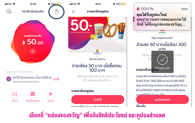 กดรับสิทธิประโยชน์เพื่อกินขนม หรือซื้อคูปองมาเก็บไว้ได้