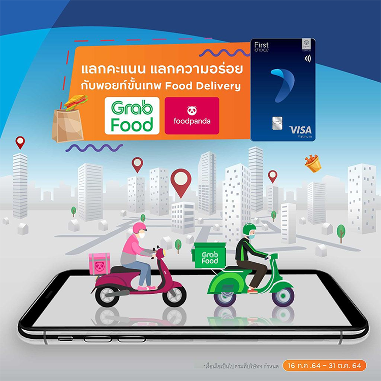 Food Delivery พอยท์ขั้นเทพ แลกคะแนนสะสมบัตรเครดิตกรุงศรีเฟิร์สช้อยส์ วีซ่า เป็นส่วนลดสุดคุ้มสำหรับ Grabfood และ foodpanda