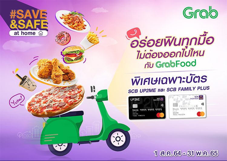 - กรอกโค้ด SCBUP2ME21 สำหรับบัตรเครดิต UP2ME เพื่อรับส่วนลด 60 บาท เมื่อสั่งอาหารผ่านบริการ GrabFood ตั้งแต่ 300 บาทขึ้นไป/รายการสั่งซื้อ จำกัด 2 สิทธิ์/ท่าน/เดือน