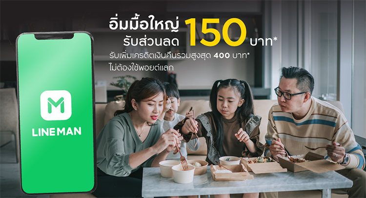 อิ่มมื้อใหญ่ ลดแรงกว่า กับ LINE MAN รับส่วนลดเฉพาะค่าอาหาร 150 บาท
