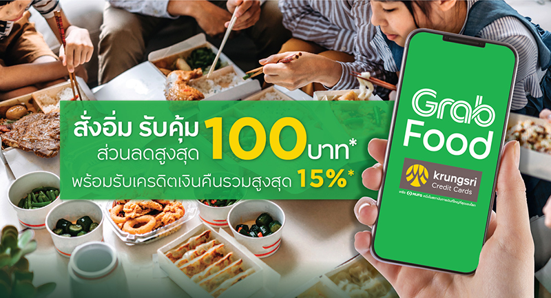 สำหรับลูกค้าใหม่* เมื่อผูกบัตรเครดิต กรุงศรี และสั่งอาหารผ่าน Grab Food รับส่วนลดเฉพาะค่าอาหาร 100 บาท*(ไม่รวมค่าจัดส่ง) โดยเมื่อสั่งอาหารครบ 300 บาทขึ้นไป/ออร์เดอร์ โดยใส่รหัส KCC100