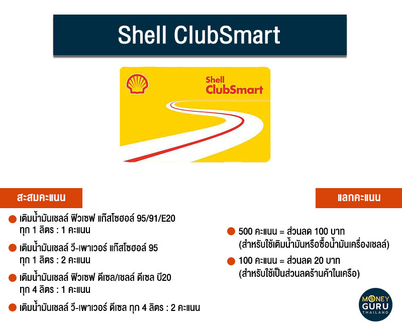 มาต่อที่บัตร "Shell Clubsmart" จากปั๊มเชลล์ สามารถสมัครบัตรได้ที่ปั๊มเชลล์แลtสร้างบัญชีออนไลน์ได้ทันที เพื่อเพิ่มความสะดวกในการตรวจสอบคะแนน นอกจากจะสะสมคะแนนเพื่อใช้เป็นส่วนลดค่าน้ำมันแล้ว ยังใช้เป็นส่วนลดร้านค้าในเครือ และส่วนลดอื่นๆ ได้อีก เช่น ส่วนลดบัตรชมการแสดงจาก Thaiticketmajor เป็นต้น