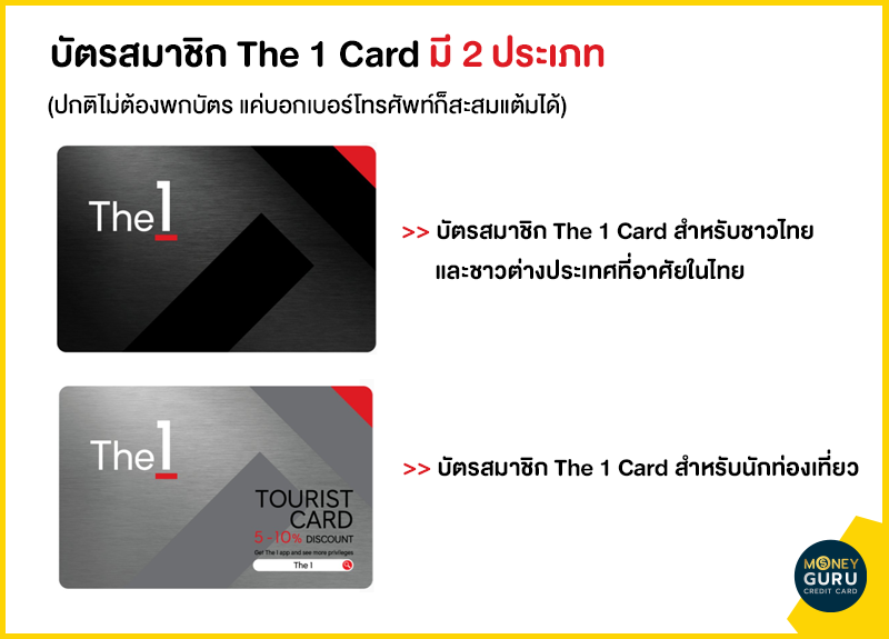 บัตรสมาชิก The 1 Card เป็นบัตรสมาชิกที่ใช้สะสมคะแนนจากทุกยอดการช้อป ที่เซ็นทรัล ฟู้ด ฮอลล์ และท็อปส์ รวมถึงห้างสรรพสินค้า โรงแรม ร้านอาหาร ร้านค้าปลีกในกลุ่มธุรกิจเซ็นทรัลกรุ๊ป เพื่อรับสิทธิประโยชน์มากมายภายใต้บัตรใบเดียว โดยบัตรสมาชิก The 1 card จะแบ่งเป็น 2 ประเภท เพื่อให้ครอบคลุมกลุ่มลูกค้าค่ะ