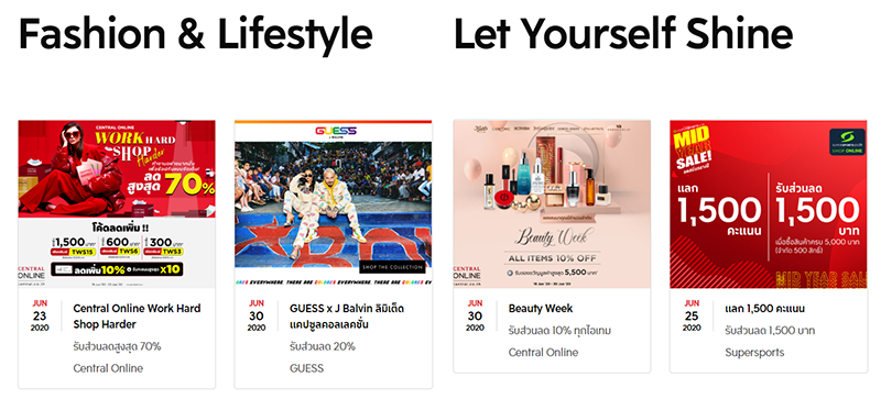 - ทุก 800 คะแนน = 100 บาท (ห้างสรรพสินค้าเซ็นทรัล, โรบินสัน, ซูเปอร์สปอร์ต, บีทูเอส, โฮมเวิร์ค, ไทวัสดุ, บ้าน แอนด์ บียอนด์, เซ็นทรัล ออนไลน์, เพาเวอร์บาย และออฟฟิศเมท)