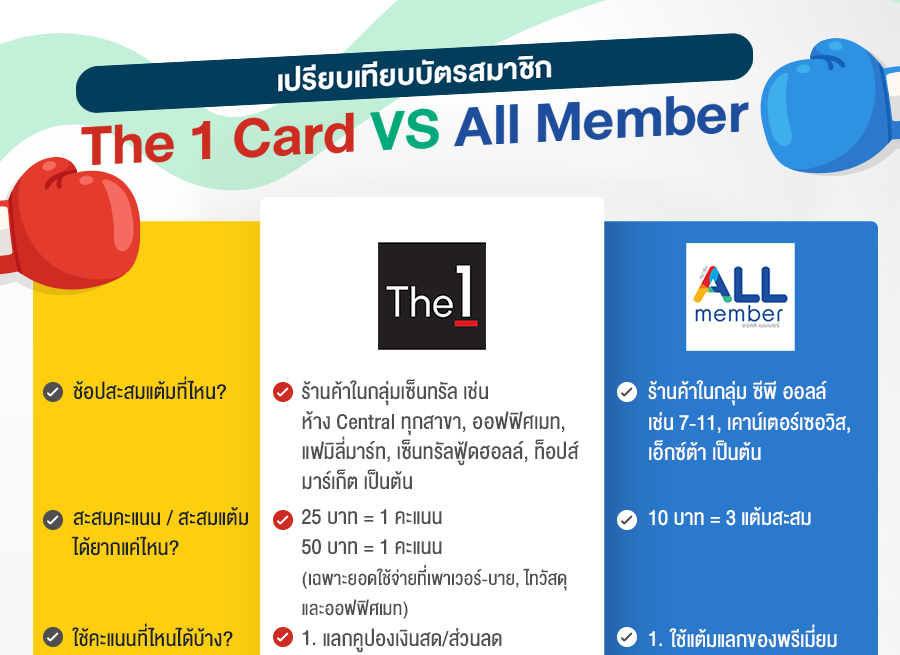 หมัดต่อหมัด คะแนนสะสม "The 1 Card" VS "ALL Member" ถ้าให้เลือก สะสมอันไหนดีกว่ากัน?