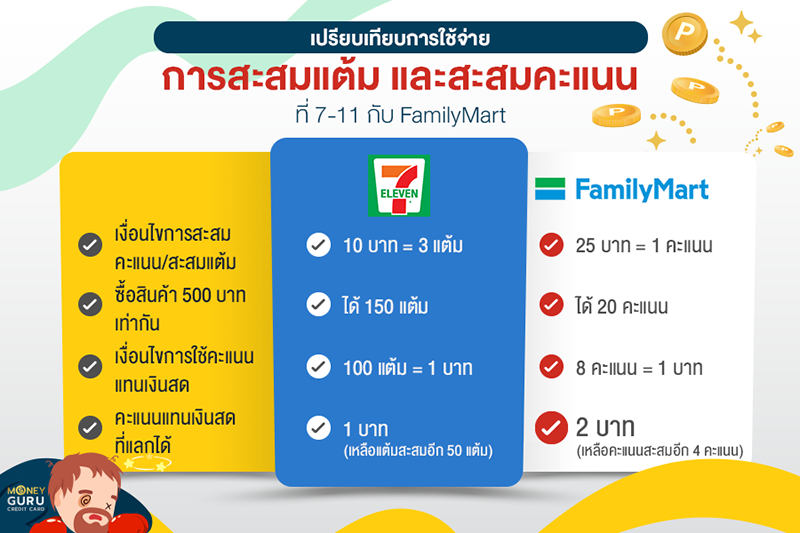 ตัวอย่างที่ 1 เปรียบเทียบการใช้จ่าย การสะสมแต้ม สะสมคะแนนที่ 7-11 กับ FamilyMart