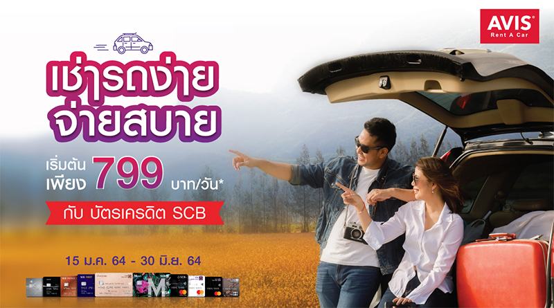 สิทธิพิเศษบัตรเครดิตไทยพาณิชย์ เมื่อจองรถเช่ากับ AVIS เช่ารถง่าย จ่ายสบาย เริ่มต้น 799 บาท/วัน* เมื่อเช่ารถยนต์ผ่าน www.AvisThailand.com/SCB