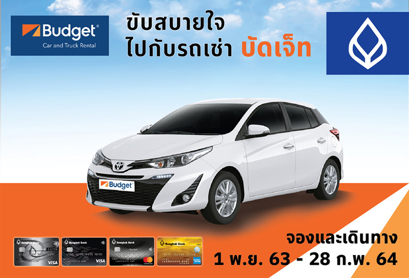 สิทธิพิเศษบัตรเครดิตธนาคารกรุงเทพ เมื่อเช่ารถกับ Budget Car and Truck Rental Thailand เริ่มต้นที่ 690 บาท/วัน สำหรับรถเครื่องยนต์รุ่น 1200 cc. หรือราคาพิเศษสำหรับรถเช่ารุ่นอื่นๆ เมื่อจองผ่านบัดเจ็ท Call Center โทร 02 203 9222 กด 1 หรือเคาน์เตอร์บัดเจ็ททุกสาขาในประเทศไทย
