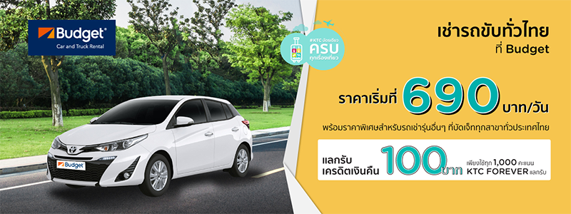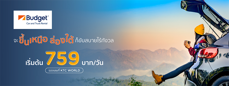 สิทธิพิเศษบัตรเครดิตเคทีซี จองรถเช่า Budget Car Rental ราคาพิเศษ เริ่มต้นเพียง 759 บาท ดีลพิเศษเฉพาะที่ KTC World Travel Service