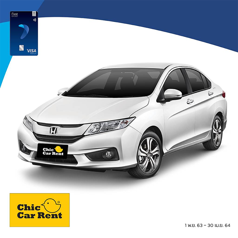 สิทธิพิเศษบัตรเครดิตกรุงศรีเฟิร์สช้อยส์ วีซ่า เมื่อเช่ารถกับ Chic Car Rent รับส่วนลด 60%* จากราคามาตรฐาน พร้อมฟรีประกันชั้น 1 (ราคาเริ่มต้น 800 บาท/วัน สำหรับรถรุ่น 1,200 CC)
