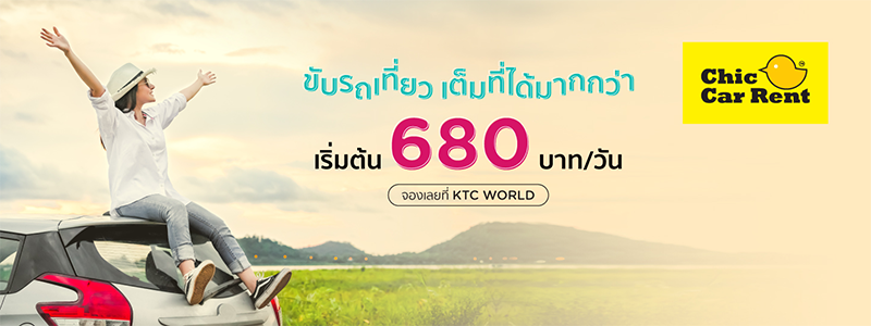 สิทธิพิเศษบัตรเครดิตเคทีซี จองรถเช่า Chic Car Rent ในราคาพิเศษ เมื่อจองกับ KTC WORLD เริ่มต้นเพียง 680 บาท / วัน เมื่อชำระเงินผ่านบัตรเครดิต KTC ทุกประเภท